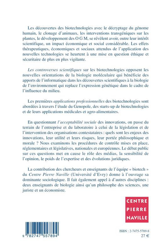 Les découvertes de biotechnologies avec le décryptage du génome humain, le clonage d'animaux, les interventions transgéniques sur les plantes, le développement des OGM, se révèlent avoir, outre leur intérêt scientifique, un impact économique et social considérable. Les effets thérapeutiques, économiques et sociaux attendus de l'application des nouvelles technologies se heurtent à une mise en question éthique et sécuritaire de plus en plus vigilante.