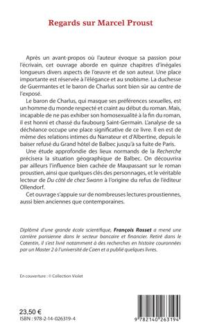 Après un avant-propos où l’auteur évoque sa passion pour l’écrivain, cet ouvrage aborde en quinze chapitres d’inégales longueurs divers aspects de l’oeuvre et de son auteur. Une place importante est réservée à l’élégance et au snobisme. La duchesse de Guermantes et le baron de Charlus sont bien sûr au centre de l’exposé. Le baron de Charlus, qui masque ses préférences sexuelles, est un homme du monde respecté et craint au début du roman. Mais, incapable de ne pas exhiber son homosexualité à la fin du roman, il est honni et chassé du faubourg Saint-Germain. L’analyse de sa déchéance occupe une place significative de ce livre. Il en est de même des relations intimes du Narrateur et d’Albertine, depuis le baiser refusé du Grand hôtel de Balbec jusqu’à sa fuite de Paris. Une étude approfondie des lieux normands de la Recherche précisera la situation géographique de Balbec. On découvrira par ailleurs l’influence bien cachée de Maupassant sur le roman proustien, ainsi que quelques clés des personnages, et le véritable lecteur de Du côté de chez Swann à l’origine du refus de l’éditeur Ollendorf. Cet ouvrage s’appuie sur de nombreuses lectures proustiennes, aussi bien anciennes que contemporaines.