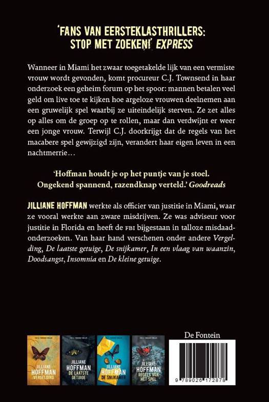 Jilliane Hoffman werkte als officier van justitie in Miami aan zware misdrijven. Ze was adviseur voor justitie in Florida en heeft de FBI bijgestaan in talloze misdaadonderzoeken. Van haar hand verschenen o.a. ‘Vergelding’ en ‘De kleine getuige’.