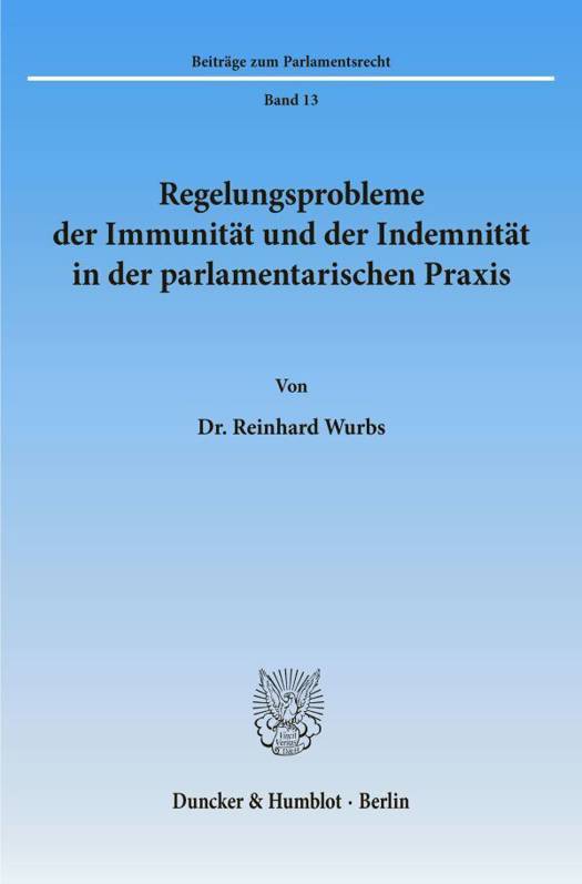 Regelungsprobleme Der Immunitat Und Der Indemnitat in Der Parlamentarischen PRAXIS
