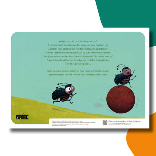 Samen met de mestkevers gaan we op zoek naar welke kleuren hoopjes poep kunnen hebben. En wat krijg je als je alle kleuren mengt? Poepbruin natuurlijk! Al is er één dier dat drolletjes in alle kleuren van de regenboog legt