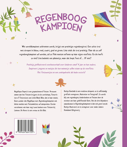 Wie wereldkampioen wielrennen wordt, krijgt een prachtige regenboogtrui. Een witte trui met strepen in blauw, rood, zwart, geel en groen. Lina vindt die trui prachtig. Maar als ze zelf regenboogkampioen wil worden, zal ze flink moeten oefenen op haar eigen racefiets. En die heeft ze niet! Lina bedenkt een plannetje, maar dat loopt fout af… Of niet?
