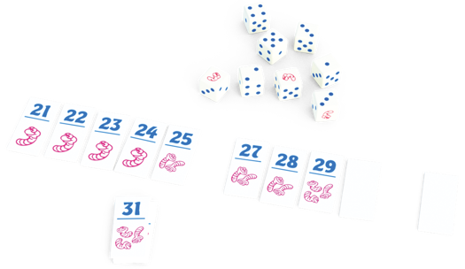 Als je aan de beurt bent, gooi je met 8 dobbelstenen. Je legt nu alle dobbelstenen met hetzelfde getal of met een worm opzij. Daarna gooi je met de resterende dobbelstenen en legt nu alle dobbelstenen met een ander getal opzij. Als je totaal hoger is dan 20 en je hebt ten minste één worm gegooid, mag je de steen met het betreffende getal van tafel of zelfs van een andere speler pakken! Maar neem je teveel risico en gooi je alleen maar getallen die je al eens hebt gepakt, dan ben je af en moet je juist een steen inleveren.