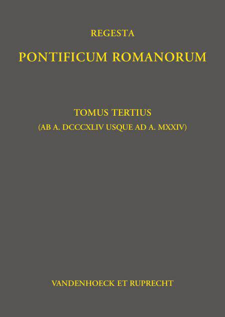Im Rahmen des Projekts »Papsturkunden des frühen und hohen Mittelalters« der Akademie der Wissenschaften zu Göttingen, welches im Gesamtunternehmen der Pius-Stiftung für Papsturkundenforschung eingebettet ist, entsteht die Neubearbeitung der Regesta Pontificum Romanorum unter der Ägide von Klaus Herbers. Der dritte Band knüpft an die ersten beiden Bände an und enthält die Pontifikate von Sergius II. bis zu Benedikt VIII. (von 844 bis 1024). In kurzen lateinischen Regesten werden systematisch die Papstkontakte in chronologischer Reihenfolge erschlossen. Durch die Aufarbeitung der Forschungsgeschichte seit der letzten Auflage 1885 wurde die Zahl der Einträge für die knapp 180 Jahre des dritten Bandes auf über 3500 erhöht. Neben zahlreichen Neufunden sind nun auch Schreiben an den Papst aufgenommen und erzählende Quellen stärker berücksichtigt. Die in großer Zahl überlieferten Briefe Leos IV., Nikolaus I. und vor allem Johannes VIII. stehen neben den Schreiben und Taten nahezu unbekannter Päpste und Gegenpäpste. Konzilsakten sowie Brief- und Rechtssammlungen wurden ebenso ausgewertet wie die Bischofsviten des Liber pontificalis und die wichtigste Historiographie. Einen zentralen Fortschritt erbrachte die bibliografische Aktualisierung. Die Regesten verweisen auf die heute maßgeblichen Editionen und die Diskussion zu Echtheit und Datierung der Papstschreiben. Konkordanzen und ein Initienregister erleichtern den Zugriff.