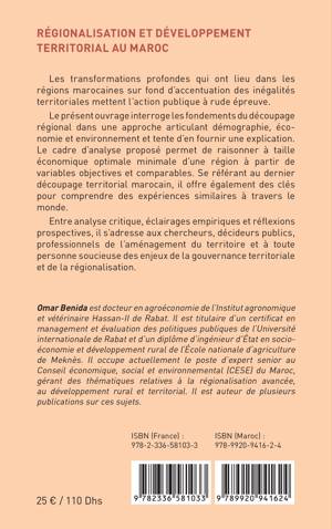 Les transformations profondes qui ont lieu dans les régions marocaines sur fond d'accentuation des inégalités territoriales mettent l'action publique à rude épreuve. Le présent ouvrage interroge les fondements du découpage régional dans une approche articulant démographie, économie et environnement et tente d'en fournir une explication. Le cadre d'analyse proposé permet de raisonner à taille économique optimale minimale d'une région à partir de variables objectives et comparables. Se référant au dernier découpage territorial marocain, il offre également des clés pour comprendre des expériences similaires à travers le monde. Entre analyse critique, éclairages empiriques et réflexions prospectives, il s'adresse aux chercheurs, décideurs publics, professionnels de l'aménagement du territoire et à toute personne soucieuse des enjeux de la gouvernance territoriale et de la régionalisation.
