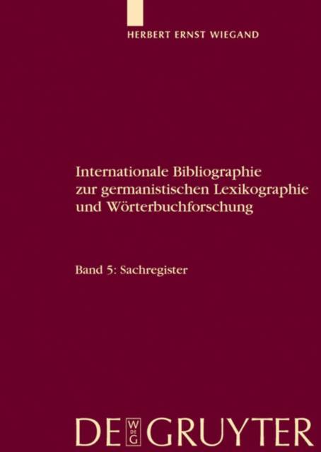 Dieser Band enthält das umfassende Register zur Internationalen Bibliographie zur germanistischen Lexikographie und Wörterbuchforschung.