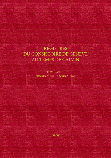 Le volume 19 des Registres du Consistoire de Genève couvre l’année 1562, marquée par le début de la première guerre de Religion en France. Suite à ce conflit, Genève se vit accueillir un nombre considérable de réfugiés fuyant la guerre. Certains de ces nouveaux arrivants avaient des croyances jugées inacceptables par les Genevois, ce qui inquiéta le tribunal des mœurs. Calvin et ses confrères pensaient, par exemple, que certains réfugiés italiens étaient anabaptistes, tandis que d’autres adhéraient aux idées antitrinitaires de Michel Servet. Le Consistoire continua de mettre l’accent sur l’obligation pour les jeunes d’assister aux leçons hebdomadaires de catéchisme et se montra de plus en plus préoccupé par la paresse et la dissipation des biens. Il décourageait fortement les modes de vie ostentatoires, s’attaquait vigoureusement à l’usure et faisait preuve d’une certaine compassion envers les pauvres. Dans le cadre des litiges matrimoniaux, le Consistoire convoqua de nombreux couples pour désordres domestiques. Calvin fut sans doute très embarrassé par les actions de sa belle-fille, Judith Tourneur : son mari obtint le divorce, fait rare à Genève à l’époque de la Réforme, après que Judith eut librement avoué avoir commis l’adultère. Les pasteurs et les anciens persistèrent à faire preuve d’un certain scepticisme à l’égard des allégations de magie et à exhorter activement les parties à régler leurs différends et à se pardonner mutuellement.