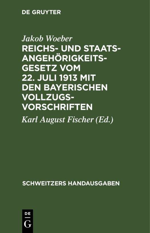 Reichs- Und Staatsangehörigkeitsgesetz Vom 22. Juli 1913 Mit Den Bayerischen Vollzugsvorschriften