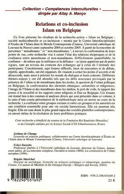 A partir de la rencontre de personnes "musulmanes" et "non-musulmanes", à travers la confrontation de leurs points de vue, cette recherche vise à cerner l'état des relations réciproques et de la confiance entre musulmans et non-musulmans. Différents thèmes y sont abordés, tels que la question de l'islam politique en Belgique, la confrontation des identités ethniques, culturelles et religieuses, l'image de l'Islam et des musulmans dans les médias, le port du voile, le rapport des jeunes à la sexualité.
