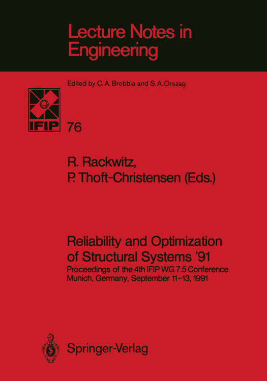 This proceedings volume contains 38 papers presented at the 4th Working Conference on "Rel- iability- and Optimization of Structural Systems", held at the Technical University of Munich, Germany, September 11- 13, 1991. The Working Conference was organised by the IFIP (Interna- tional Federation for Information Processing) Working Group 7.5 of Technical Committee 7 and was the fourth in a series, following similar conferences held at the University of Aalborg, Den- mark, May 1987, at the Imperial College, London, UK, September 1988 and at the University of California, Berkeley, California, USA, March 1990. The Working Conference was attended by 54 participants from 16 countries. The objectives of Working Group 7.5 are: - to promote modern structural systems optimization and reliability theory, - to advance international cooperation in the field of structural system optimization and reliability theory, - to stimulate research, development and application of structural system optimization and reli- ability theory, - to further the dissemination and exchange of information on reliability and optimization of structural systems - to encourage education in structural system optimization and reliability theory. At present the members of the Working Group are: A. H.-S. Ang, U.S.A. M. Grimmelt, FRG G. A ugwti, Italy N. C. Lind, Canada M. J. Baker, UK H. O. Mad&en, Denmark P. Bjerager, Norway R. E. Melcher, Australia C. A. Cornell, U.S.A. F. Mo e, U.S.A.