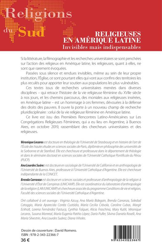 Si la littérature, la filmographie et les recherches universitaires se sont penchées sur l’action des religieux en Amérique latine, les religieuses, quant à elles, ne sont que rarement évoquées. Passées sous silence et rendues invisibles, même au sein de leur propre institution, l’Église, ce sont pourtant elles qui vont aux confins des territoires les plus reculés pour apporter leur soutien aux populations les plus vulnérables. Ces textes issus de recherches universitaires menées dans diverses disciplines - qui retrace l’histoire de la vie religieuse féminine du XVIIe siècle à nos jours, et les chemins parcourus, des moniales aux religieuses insérées, en Amérique latine - est un hommage à ces femmes, dévouées à la défense des droits des pauvres. Il ouvre la porte à un nouveau champ de recherche pluridisciplinaire : celui de la vie religieuse féminine en Amérique latine. Ce livre est issu des Premières Rencontres Latino-Américaines sur Les Congrégations Religieuses Féminines, qui a eu lieu en Argentine, à Buenos Aires, en octobre 2019, rassemblant des chercheurs universitaires et des religieuses.