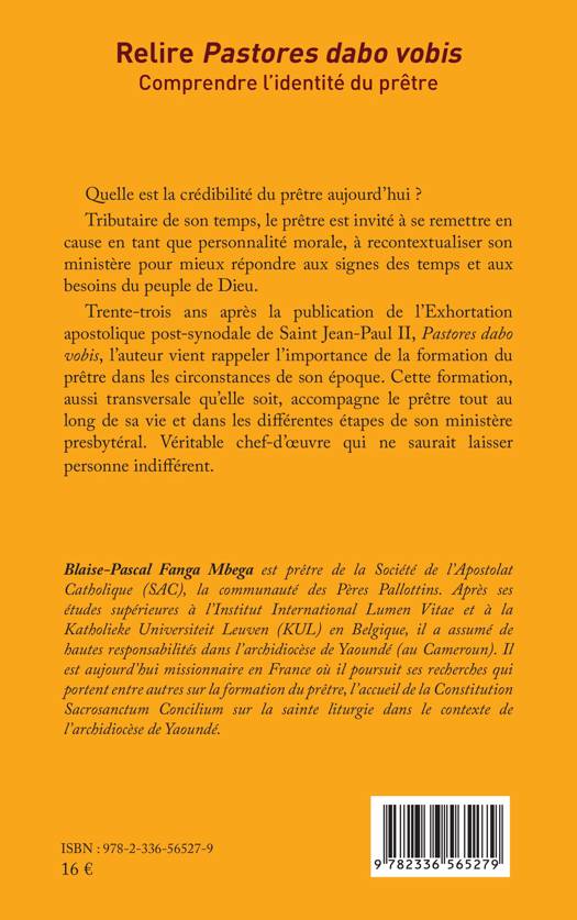 Quelle est la crédibilité du prêtre aujourd'hui ? Tributaire de son temps, le prêtre est invité à se remettre en cause en tant que personnalité morale, à recontextualiser son ministère pour mieux répondre aux signes des temps et aux besoins du peuple de Dieu. Trente-trois ans après la publication de l'Exhortation apostolique post-synodale de Saint Jean-Paul II, Pastores dabo vobis, l'auteur vient rappeler l'importance de la formation du prêtre dans les circonstances de son époque. Cette formation, aussi transversale qu'elle soit, accompagne le prêtre tout au long de sa vie et dans les différentes étapes de son ministère presbytéral. Véritable chef-d'oeuvre qui ne saurait laisser personne indifférent.