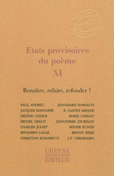 A l'heure où le Théâtre National Populaire opère une métamorphose architecturale radicale et entend se réinventer sans justement trahir ses principes, les Etats Provisoires du Poème ont sollicité le point de vue de gens de théâtre et de poètes. Fictions, réflexions, métaphores poétiques, les textes ici rassemblés ouvrent les portes : au lecteur de mesurer ce qui s'y joue..,.