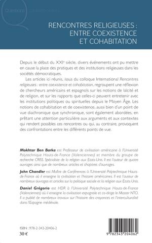 Depuis le début du XXIe siècle, divers événements ont pu mettre en cause la place des pratiques et des institutions religieuses dans les sociétés démocratiques. Cet ouvrage interroge les notions de laïcité et de religion, leurs rapports avec les institutions politiques ou spirituelles depuis le Moyen Âge. Les notions de cohabitation et de coexistence sont également abordées, en prêtant une attention particulière aux arguments et aux contextes
