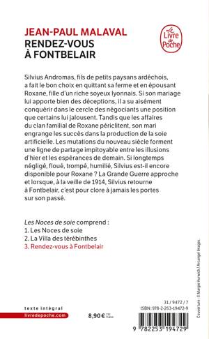 Silvius Andromas, fils de petits paysans ardéchois, a fait le bon choix en quittant sa ferme et en épousant Roxane, fille d'un riche soyeux lyonnais. Si son mariage lui apporte bien de déceptions, il a su aisément conquérir dans le cercle des négociants une position que certains lui jalousent. Tandis que les affaires du clan familial de Roxane périclitent, son mari engrange les succès dans la production de la soie artificielle. Les mutations du nouveau siècle forment une ligne de partage impitoyable entre les illusions d'hier et les espérances de demain. Si longtemps négligé, floué, trompé, humilié, Silvius est-il encore disponible pour Roxane ? La Grande Guerre approche et si, à la veille de 1914, Silvius retourne à Fontbelair, c'est pour clore à jamais les portes sur son passé.