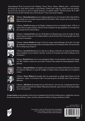 Chateaubriand, Féval, Leconte de Lisle, Flaubert, Nerval, Navery, Dumas, Mirbeau, Jarry : neuf histoires d’écrivains du XIXe siècle dont le destin a croisé Rennes. Parfois pour vingt ans, parfois pour une journée. Qu’ont-ils fait, qu’ont-ils vu, dans la capitale bretonne, ces grands auteurs ? Qu’ont-ils pensé de la ville ? Qu’ont-ils écrit sur elle ? Quelles traces ont-ils laissées ? Nous avons mené l’enquête.