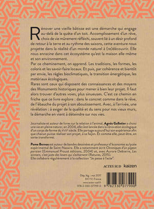 Rénover une vieille bâtisse est une démarche qui engage au-delà de la quête d'un toit. Accomplissement d'un rêve, choix de vie mûrement réfl échi, souvent lié à un désir profond de retour à la terre et au rythme des saisons, cette aventure nous projette dans la réalité d'un monde naturel à (re)découvrir. Elle nous enracine dans cet écosystème qu'est la maison elle-même et son environnement.
