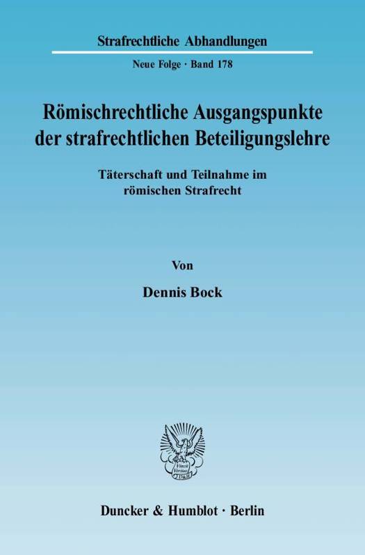 Dem römischen Strafrecht wird in der deutschsprachigen Rechtswissenschaft nur geringe Aufmerksamkeit entgegengebracht. Zu Recht? Für den Bereich der Täterschaft und Teilnahme macht es sich Dennis Bock zur Aufgabe, ein verschollenes Kapitel Strafrechtsgeschichte wieder zu vergegenwärtigen und allgemein zugänglich zu machen. Der Autor geht hierbei von einem funktionalen Ansatz aus, der darauf abzielt, die rechtshistorische Forschung für die gegenwärtige Wissenschaft fruchtbar zu machen. Insbesondere bettet er seine Arbeit in die Frage des strafrechtlichen Europäisierungsprozesses ein, der vor dem Hintergrund des lange geltenden gemeinen Strafrechts auf römischrechtlicher Grundlage eigentlich eine erneute Europäisierung darstellt. Er zeigt, dass die Beschäftigung mit dem römischen Strafrecht als Ausgangspunkt vieler geltender Rechtsordnungen insofern von besonderem Interesse sein kann.
