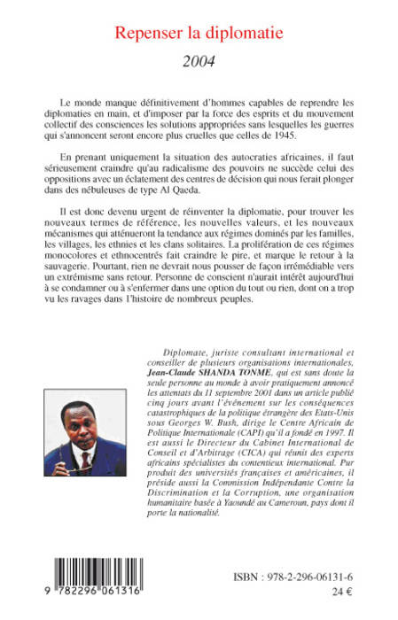 Concentrant son attention sur la situation des autocraties africaines, l'auteur montre l'urgence de réinventer la diplomatie, pour trouver les nouveaux termes de référence, les nouvelles valeurs et les nouveaux mécanismes qui atténueront la tendance aux régimes dominés par les familles, les villages, les ethnies et les clans solitaires.