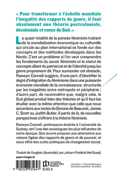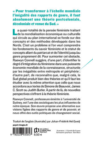 La quasi-totalité de la pensée féministe traitant de la mondialisation économique ou culturelle qui circule au plan international se fonde sur des concepts et des méthodes développés dans les Nords. C'est un problème si l'on veut comprendre les fondements du savoir féministe et le statut de concepts allant du patriarcat et de l'identité jusqu'au genre proprement dit. Pour surmonter cet obstacle, Raewyn Connell suggère, d'une part, d'identifier le degré d'intégration du féminisme dans une puissante économie mondiale de la connaissance, structurée par les inégalités entre métropole et périphérie ; d'autre part, de reconnaître que, malgré cela, le Sud global produit bien des théories et qu'il faut les prendre au sérieux, les étudier avec la même attention que celle que nous accordons aux textes de Simone de Beauvoir, James C. Scott ou Judith Butler. À partir de là, de nouvelles perspectives s'offrent à la théorie féministe.