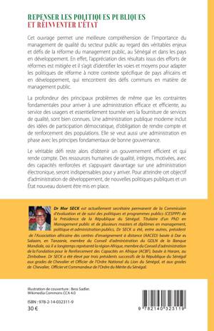 Cet ouvrage permet une meilleure compréhension de l'importance du management de qualité du secteur public au regard des véritables enjeux et défis de la réforme du management public, au Sénégal et dans les pays en développement. En effet, l'appréciation des résultats issus des efforts de réformes est mitigée et il s'agit d'identifier les voies et moyens pour adapter les politiques de réforme à notre contexte spécifique de pays africains et en développement, qui rencontrent des défis communs en matière de management public.