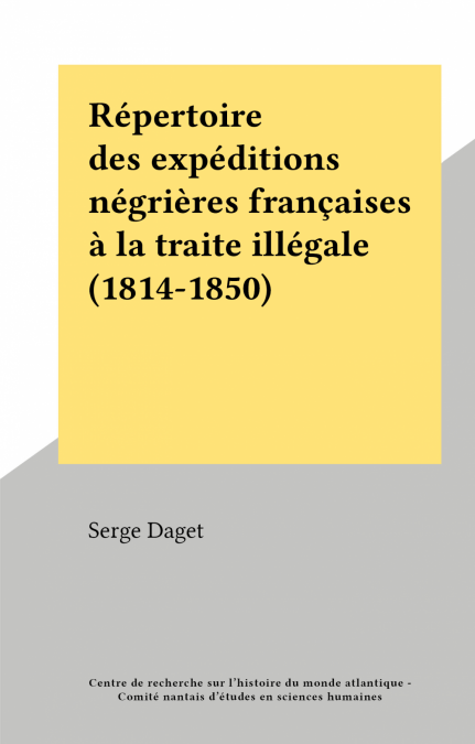 Répertoire des expéditions négrières françaises à la traite illégale (1814-1850) EBOOK