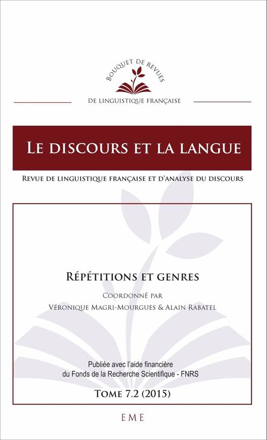 Répétitions, figures de répétition et effets pragmatiques selon les genres, Alain Rabatel & Véronique Magri-Mourgues / Des répétitions dans le discours religieux : l'exemple des litanies, Alain Rabatel / Les figures de syntaxe de la répétition revisitées, Emmanuelle Prak-Derrington / Dire et redire en débat politique : effets discursifs et interactionnels, Marion Sandré / Écriture professionnelle et contexte de tension : la répétition, un outil d'orientation co-énonciatif du lecteur…