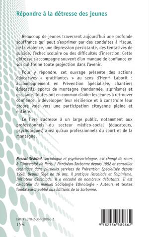 Beaucoup de jeunes traversent aujourd'hui une profonde souffrance qui peut s'exprimer par des conduites à risque, de la violence, une dépression persistante, des tentatives de suicide, l'échec scolaire ou des difficultés d'insertion. Cette détresse s'accompagne souvent d'un manque de confiance en soi qui freine toute projection dans l'avenir. Pour y répondre, cet ouvrage présente des actions éducatives gratifiantes au sens d'Henri Laborit: accompagnement en Prévention Spécialisée, chantiers éducatifs, sports de montagne (randonnée, alpinisme) et escalade. Toutes ont en commun d'aider les jeunes à retrouver confiance, à développer leur résilience et à construire leur propre voie vers une participation citoyenne pleine et entière. Ce livre s'adresse à un large public, notamment aux professionnels du secteur médico-social (éducateurs, psychologues) ainsi qu'aux professionnels du sport et de la montagne.