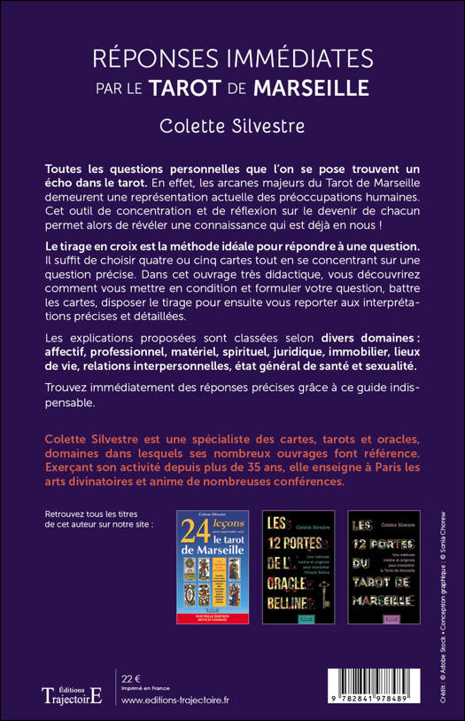 Toutes les questions personnelles que l'on se pose trouvent un écho dans le tarot. En effet, les arcanes majeurs du Tarot de Marseille sont utilisés depuis des siècles comme outil de concentration et de réflexion pour révéler une connaissance qui est déjà en soi ! Le tirage en croix est la méthode idéale pour répondre à une question. Dans cet ouvrage très didactique, vous découvrirez comment vous mettre en condition et formuler votre question, battre les cartes, disposer les 4 ou 5 cartes tirées pour ensuite vous reporter aux interprétations précises et détaillées. Les explications proposées sont classées selon divers domaines : affectif, professionnel, matériel, spirituel, juridique, immobilier, lieux de vie, relations interpersonnelles, état général de santé et sexualité. Trouvez immédiatement des réponses précises grâce à ce guide indispensable.