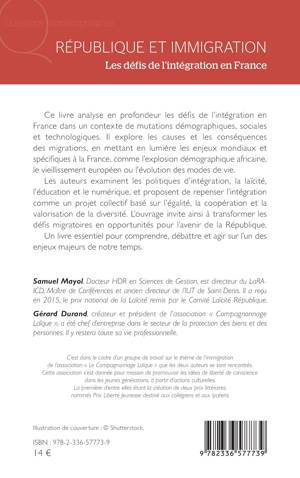 Ce livre analyse en profondeur les défis de l’intégration en France dans un contexte de mutations démographiques, sociales et technologiques. Il explore les causes et les conséquences des migrations, en mettant en lumière les enjeux mondiaux et spécifiques à la France, comme l’explosion démographique africaine, le vieillissement européen ou l’évolution des modes de vie. Les auteurs examinent les politiques d’intégration, la laïcité, l’éducation et le numérique, et proposent de repenser l’intégration comme un projet collectif basé sur l’égalité, la coopération et la valorisation de la diversité. L’ouvrage invite ainsi à transformer les défis migratoires en opportunités pour l’avenir de la République. Un livre essentiel pour comprendre, débattre et agir sur l’un des enjeux majeurs de notre temps.