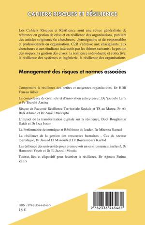 Les Cahiers Risques et Résilience sont une revue généraliste de référence en gestion de crise et en résilience des organisations, publiant des articles originaux de chercheurs, d’enseignants et de responsables et professionnels en organisation. C2R s’adresse aux enseignants, aux chercheurs et aux étudiants intéressés par les thèmes suivants : la gestion des risques, la gestion des crises, la résilience individuelle et collective, la résilience des systèmes et ingénierie, la résilience des organisations. Management des risques et normes associées