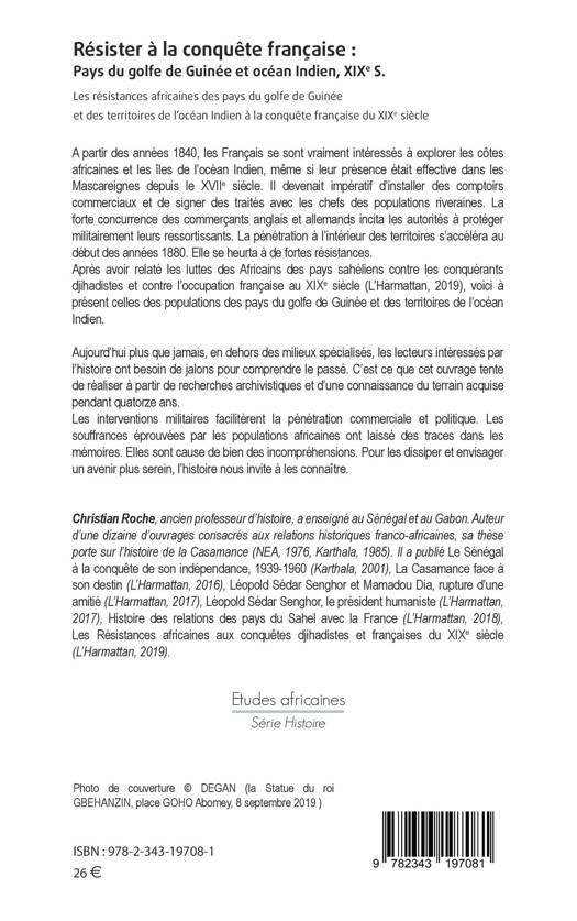 A partir des années 1840, les Français se sont vraiment intéressés à explorer les côtes africaines et les îles de l'océan Indien. La pénétration à l'intérieur des territoires s'accéléra au début des années 1880 et se heurta à de fortes résistances. Après avoir relaté les luttes des Africains des pays sahéliens contre les conquérants djihadistes et contre l'occupation française au XIXe siècle (L'Harmattan), voici à présent celles des populations des pays du golfe de Guinée et des territoires de l'océan Indien.