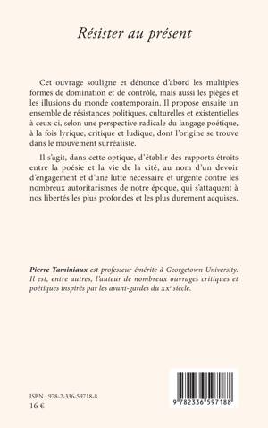 Cet ouvrage souligne et dénonce d'abord les multiples formes de domination et de contrôle, mais aussi les pièges et les illusions du monde contemporain. Il propose ensuite un ensemble de résistances politiques, culturelles et existentielles à ceux-ci, selon une perspective radicale du langage poétique, à la fois lyrique, critique et ludique, dont l'origine se trouve dans le mouvement surréaliste. Il s'agit, dans cette optique, d'établir des rapports étroits entre la poésie et la vie de la cité, au nom d'un devoir d'engagement et d'une lutte nécessaire et urgente contre les nombreux autoritarismes de notre époque, qui s'attaquent à nos libertés les plus profondes et les plus durement acquises.