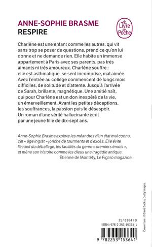Charlène est une enfant comme les autres, qui vit sans trop se poser de questions, prend ce qu'on lui donne et ne demande rien. Elle habite un immense appartement à Paris avec ses parents, pas très aimants ni très amoureux. Charlène souffre: elle est asthmatique, se sent incomprise, mal aimée. Avec l'entrée au collège commencent de longs mois difficiles, de solitude et d'attente. Jusqu'à l'arrivée de Sarah, brillante, magnétique. Une amitié naît, qui pour Charlène est un don inespéré de la vie, un émerveillement. Avant les petites déceptions, les souffrances, la passion puis le désespoir. Un roman d'une vérité hallucinante écrit par une jeune fille de 17 ans.Anne-Sophie explore les méandres d'un état mal connu, cet « âge ingrat » jonché de tourments et d'excès. Elle évite l'écueil du déballage, les facilités du genre « premiers émois », et mène son histoire comme les dieux une tragédie antique. Étienne de Montéty, Le Figaro magazine.