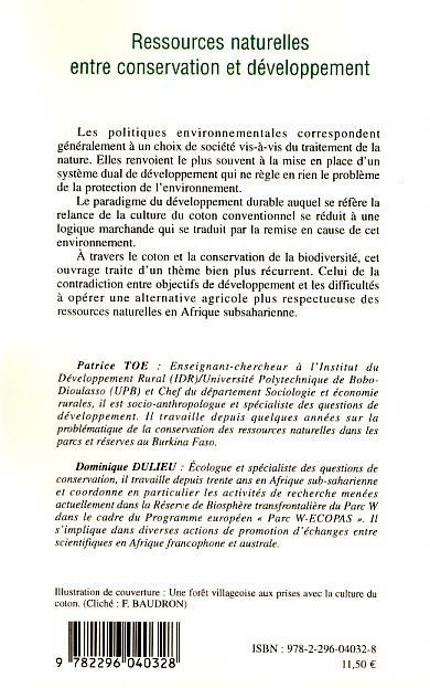 A travers le coton et la conservation de la biodiversité, cet ouvrage traite d'un thème récurrent : celui de la contradiction entre les objectifs de développement et les difficultés à opérer une alternative agricole plus respectueuse des ressources naturelles en Afrique subsaharienne.