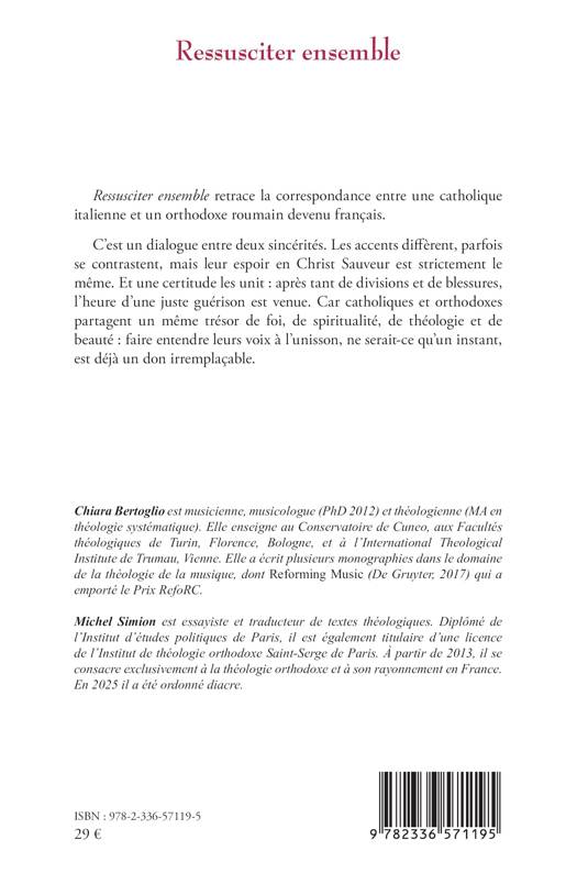 Ressusciter ensemble retrace la correspondance entre une catholique italienne et un orthodoxe roumain devenu français. C'est un dialogue entre deux sincérités. Les accents diffèrent, parfois se contrastent, mais leur espoir en Christ Sauveur est strictement le même. Et une certitude les unit: après tant de divisions et de blessures, l'heure d'une juste guérison est venue. Car catholiques et orthodoxes partagent un même trésor de foi, de spiritualité, de théologie et de beauté faire entendre leurs voix à l'unisson, ne serait-ce qu'un instant, est déjà un don irremplaçable.