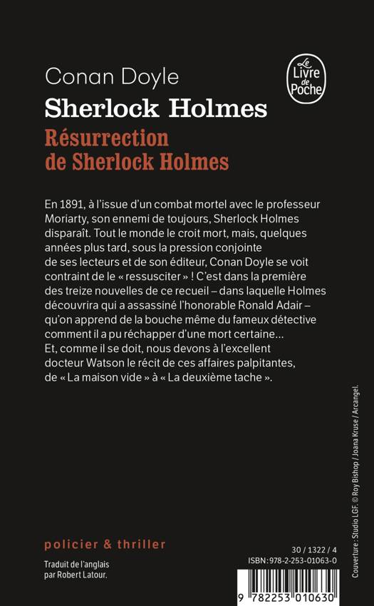 En 1891, à l'issue d'un combat mortel avec son ennemi de toujours, le professeur Moriarty, Sherlock Holmes disparaît et tout le monde le croit mort. Mais, trois ans plus tard, sous la pression conjointe de ses lecteurs et de son éditeur, Conan Doyle se voit contraint de le «ressusciter» ! C'est dans « La maison vide », la première des treize nouvelles de ce recueil - dans laquelle Holmes découvrira qui a assassiné l'honorable Ronald Adair -, qu'on apprend de la bouche mème du fameux détective comment il a pu réchapper d'une mort certaine... Et, comme il se doit, nous devons à l'excellent Watson le récit de ces affaires palpitantes: