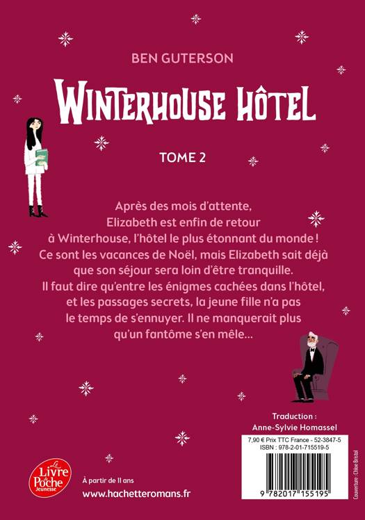 Après des mois d’attente, Elizabeth est enfin de retour à Winterhouse Hôtel ! Elle apprend avec bonheur que Norbridge a finalement réussi à prouver qu’il est bien son grand-père, elle va donc s’établir à l’hôtel pour de bon ! Toute à sa joie de retrouver Freddy et sa bibliothèque chérie, Elizabeth n’en remarque pas moins quelques bizarreries… Qui est cette Elana qui l’assaille de questions ? Que signifient les mots gravés sur le sceau de Winterhouse Hôtel ? Pourquoi la tombe de Gracella est-elle introuvable au cimetière de la ville ? Autant de mystères à résoudre dans l’atmosphère envoûtante de Winterhouse Hôtel !