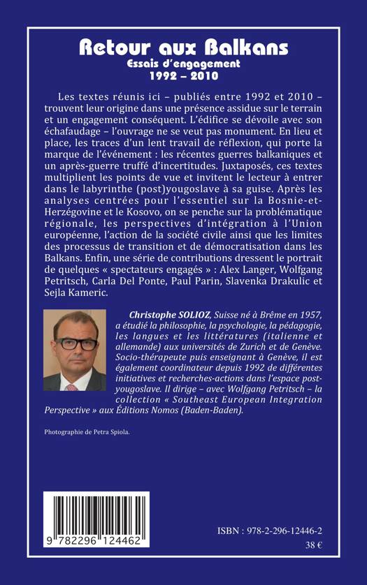 Les textes réunis ici trouvent leur origine dans une présence assidue sur le terrain et un engagement conséquent. Après les analyses centrées pour l'essentiel sur la Bosnie-Herzégovine et le Kosovo, on se penche sur la problématique régionale, les perspectives d'intégration à l'Union européenne, l'action de la société civile ainsi que les limites des processus de transition et de démocratisation dans les Balkans. Enfin, une série de contributions dressent le portrait de quelques "spectateurs engagés".
