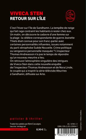 C'est l'hiver sur l'île de Sandhamn. La tempête de neige qui fait rage contraint les habitants à rester chez eux. Un matin, on découvre le cadavre d'une femme sur la plage : la célèbre correspondante de guerre Jeanette Thiels était connue pour son franc-parler avec certaines personnalités influentes, issues notamment du parti xénophobe Suède Nouvelle. Crime politique ou vengeance personnelle masquée ? L'inspecteur Thomas Andreasson n'a pas le temps de répondre qu'un nouveau meurtre a lieu.