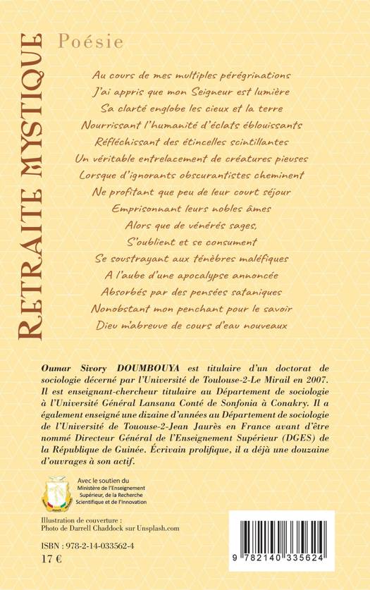 Au cours de mes multiples pérégrinations/J'ai appris que mon Seigneur est lumière/ Sa clarté englobe les cieux et la terre/ Nourrissant l'humanité d'éclats éblouissants /Réfléchissant des étincelles scintillantes /Un véritable entrelacement de créatures pieuses /Lorsque d'ignorants obscurantistes cheminent /Ne profitant que peu de leur court séjour /Emprisonnant leurs nobles âmes Alors que de vénérés sages/ S'oublient et se consument /Se soustrayant aux ténèbres maléfiques/ A l'aube d'une apocalypse annoncée/ Absorbés par des pensées sataniques /Nonobstant mon penchant pour le savoir Dieu m'abreuve de cours d'eau nouveaux.