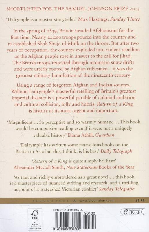 Shortlisted for the Samuel Johnson Prize 2013, Return of a King is the definitive analysis of the First Afghan War, told through the lives of unforgettable characters on all sides and using for the first time contemporary Afghan accounts of the conflict. Prize-winning and bestselling historian William Dalrymple's masterful retelling of Britain's greatest imperial disaster is a powerful and important parable of colonial ambition and cultural collision, folly and hubris, for our times.
