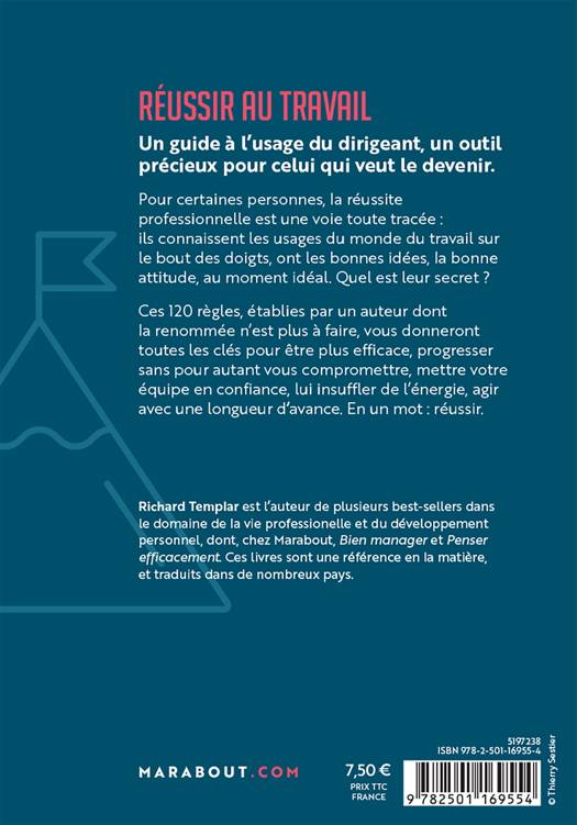 Pour certaines personnes, la réussite professionnelle est une voie toute tracée : ils connaissent les usages du monde du travail sur le bout des doigts, ont les bonnes idées, la bonne attitude, au moment idéal. Quel est leur secret ? Ces 120 règles, établies par un auteur dont la renommée n’est plus à faire, vous donneront toutes les clés pour être plus efficace, progresser sans pour autant vous compromettre, mettre votre équipe en confiance, lui insuffler de l’énergie, agir avec une longueur d’avance. En un mot : réussir.