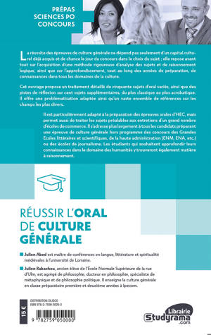 Ce livre s'adresse à tous les étudiants devant passer un oral de culture générale.