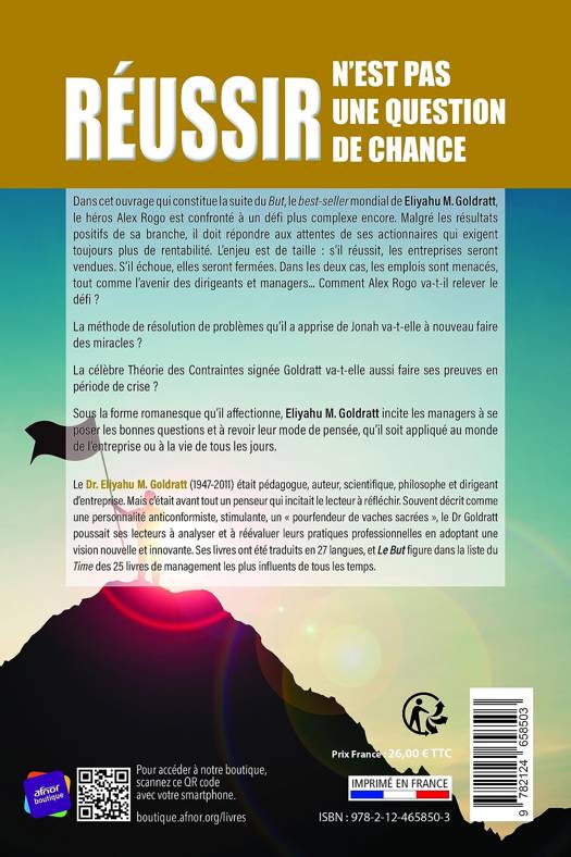 Dans cet ouvrage qui constitue la suite du But, le best-seller mondial de Eliyahu M. Goldratt, le héros Alex Rogo est confronté à un défi plus complexe encore. Malgré les résultats positifs de sa branche, il doit répondre aux attentes de ses actionnaires qui exigent toujours plus de rentabilité. L’enjeu est de taille : s’il réussit, les entreprises seront vendues. S’il échoue, elles seront fermées. Dans les deux cas, les emplois sont menacés, tout comme l’avenir des dirigeants et managers... Comment Alex Rogo va-t-il relever le défi ?