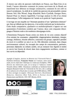 À travers une série de parcours individuels en France, aux États-Unis et en Israël, l'auteur démontre comment de jeunes survivants de la Shoah ont transformé leur détresse en énergie constructive, comment ils ont créé ou innové socialement. Au-delà de la variété des parcours de personnalités comme Simone Veil, Elie Wiesel, Serge Klarsfeld, Boris Cyrulnik, Georges Perec, Samuel Pisar ou Aharon Appelfeld, l'ouvrage analyse le rôle d'un climat démocratique, l'effet intégrateur de l'armée ou le poids de l'esprit pionnier.