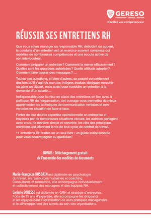 Fortes de leur double expertise opérationnelle en entreprise et inspirées par de nombreuses situations vécues, les autrices partagent avec vous, de manière simple et concrète, les clés des principaux entretiens qui jalonnent la vie de tout cycle de contrat de travail.