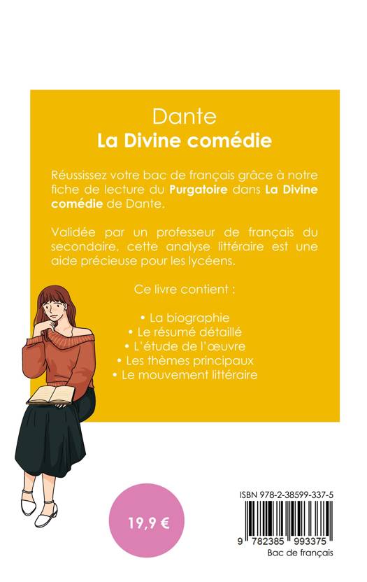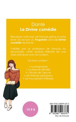Réussissez votre bac de français 2026 grâce à notre fiche de lecture du Purgatoire dans La Divine comédie de Dante ! Validée par un professeur de français du secondaire, cette analyse littéraire est une aide précieuse pour tous les lycéens. Grâce à notre travail éditorial, les points suivants n'auront plus aucun secret pour vous : la biographie de l'écrivain, le résumé du livre, l'étude de l'oeuvre, l'analyse des thèmes principaux à connaître et le mouvement littéraire auquel est rattaché l'auteur.