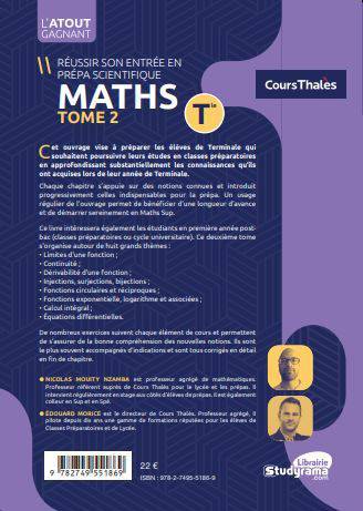 Cet ouvrage vous propose d'approfondir les thèmes de mathématiques déjà abordés au lycée et qui seront à nouveau rencontrés lors de la première année post-bac. Il aidera à introduire et mettre en œuvre des outils généraux, des méthodes d’analyse et de résolution de problème, des méthodes de rédaction,... afin de bénéficier d’une longueur d’avance et de démarrer sereinement la prépa scientifique dès la rentrée.