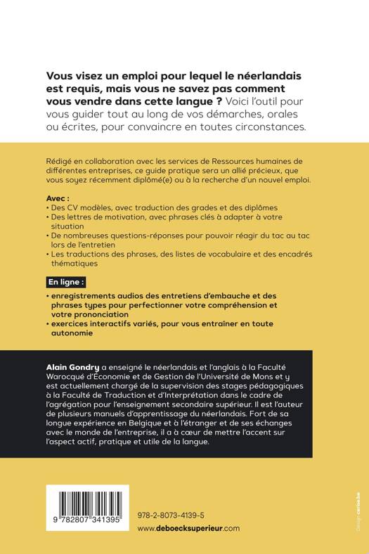 Vous visez un emploi pour lequel le néerlandais est requis, mais vous ne savez pas comment vous vendre dans cette langue ? Voici l’outil pour vous guider tout au long de vos démarches, orales ou écrites, pour convaincre en toutes circonstances.